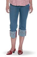Джинсы с отворотами и контрастной отделкой